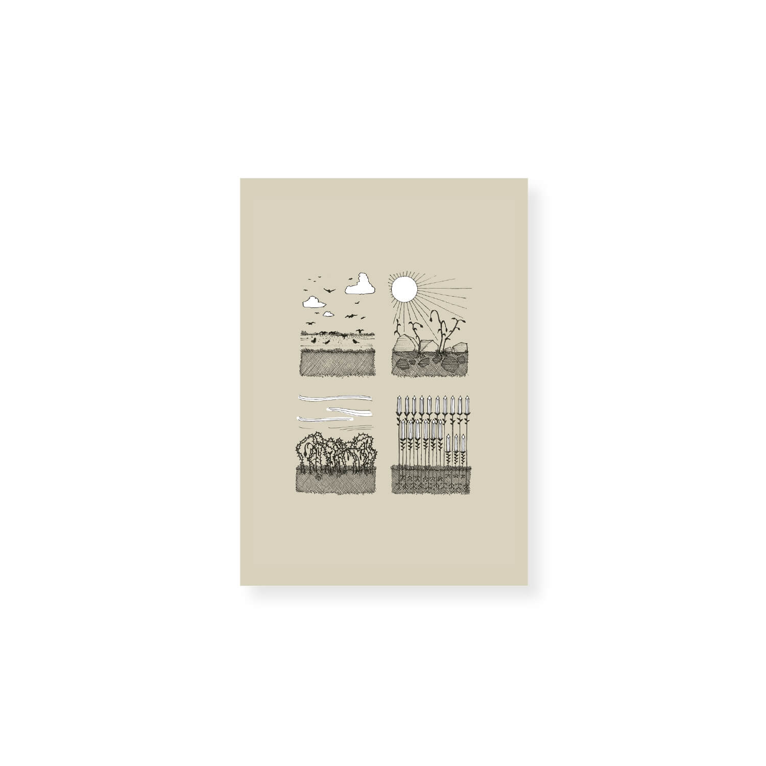 Hand drawn sketch of Jesus's Parable of the Sower to the crowds as seen in Matthew 13:3-8, "And he told them many things in parables, saying: “A sower went out to sow. And as he sowed, some seeds fell along the path, and the birds came and devoured them. Other seeds fell on rocky ground, where they did not have much soil, and immediately they sprang up, since they had no depth of soil, but when the sun rose they were scorched. And since they had no root, they withered away. Other seeds fell among thorns, and the thorns grew up and choked them. Other seeds fell on good soil and produced grain, some a hundredfold, some sixty, some thirty.""