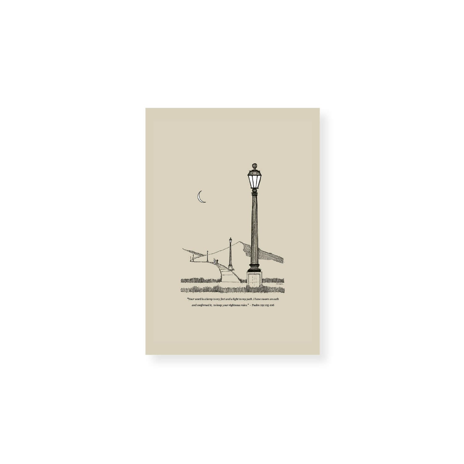 This hand-drawn sketch depicts Psalm 119:105-106: